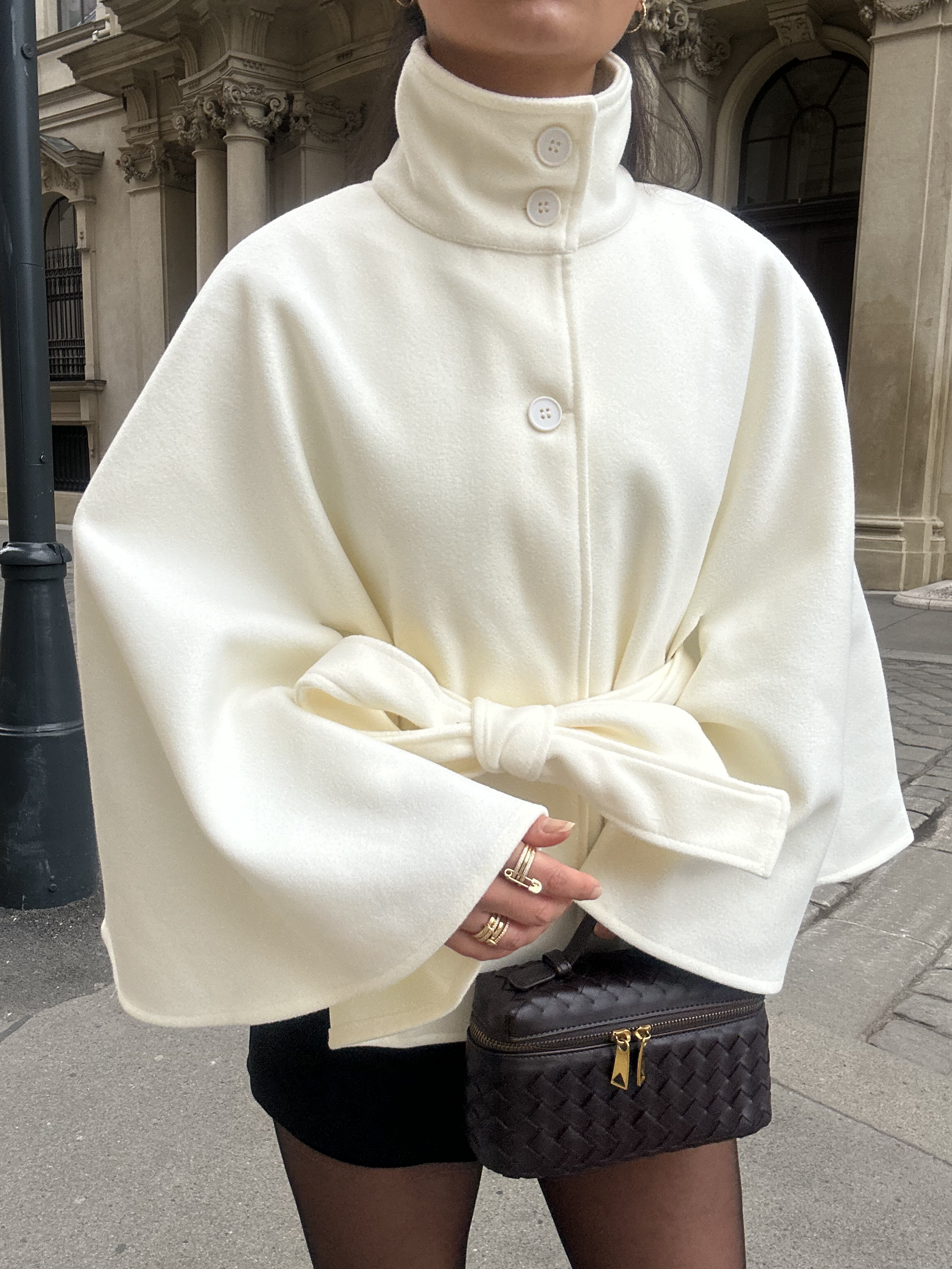 The Gianna Elegant High-Neck Belted Cape Jacket is the ultimate blend of timeless sophistication and cozy functionality, designed to elevate any wardrobe. With its refined high-neck collar and classic button-down front, this cape jacket exudes elegance while providing reliable warmth during cooler seasons. The flowing cape-inspired silhouette drapes beautifully, allowing for effortless layering over dresses, blouses, or knitwear, while the detachable waist belt cinches at the waist to create a flattering and feminine shape. Crafted from premium soft-touch fabric, it offers both durability and comfort, making it suitable for formal occasions, office wear, weekend city strolls, or evening outings. This jacket embodies versatility and understated luxury, ensuring it becomes a statement piece youโ€™ll reach for year after year. Perfect for women who value stylish outerwear, high-quality craftsmanship, and chic layering options, the Gianna Cape Jacket is an essential for autumn and winter wardrobes.