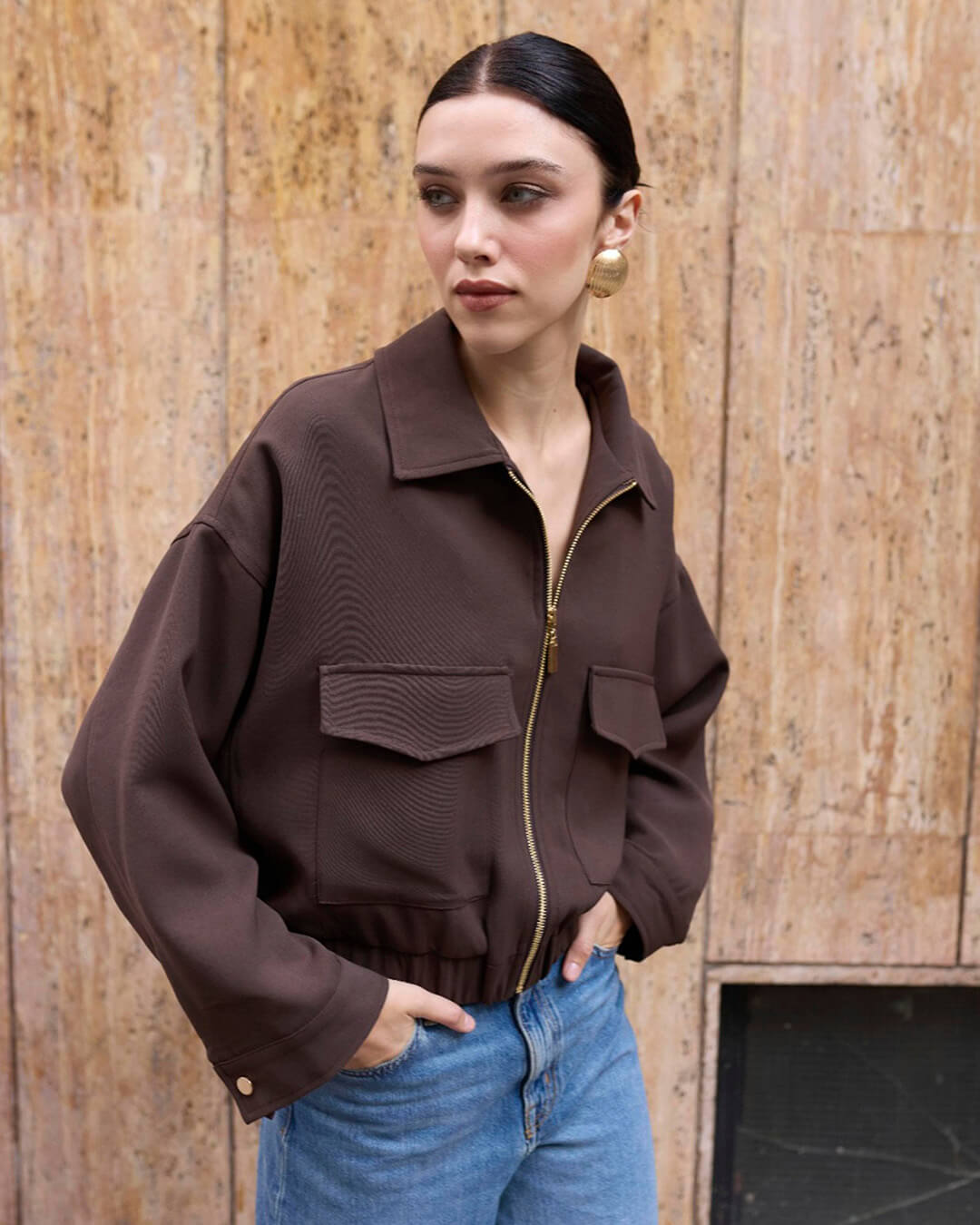Featuring a smooth full-zip front and strategically placed oversized pockets, the Zoey Jacket balances functional storage with a flattering, structured silhouette. Its minimalist profile makes it a seamless addition to any wardrobe, offering a polished finish whether you’re running errands or meeting friends for brunch. Experience the perfect blend of high-quality craftsmanship and everyday comfort.