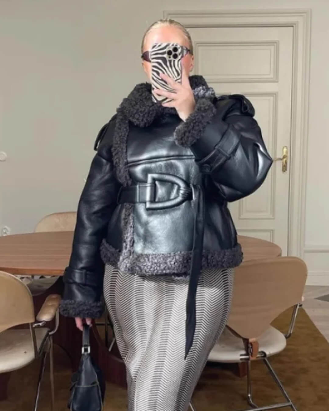 Stylish Faux Fur Leather Jacket